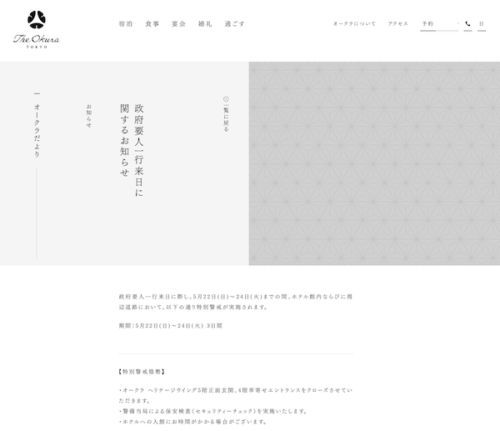 ホテルオークラ東京の館内はもちろん、周辺道路では厳重な特別警戒が実施されています。